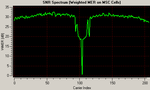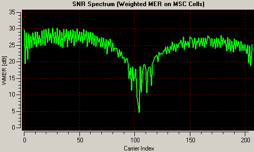 Das SNR-Spektrum zeigt das SNR der Einzelträger des DRM-Signals (hier